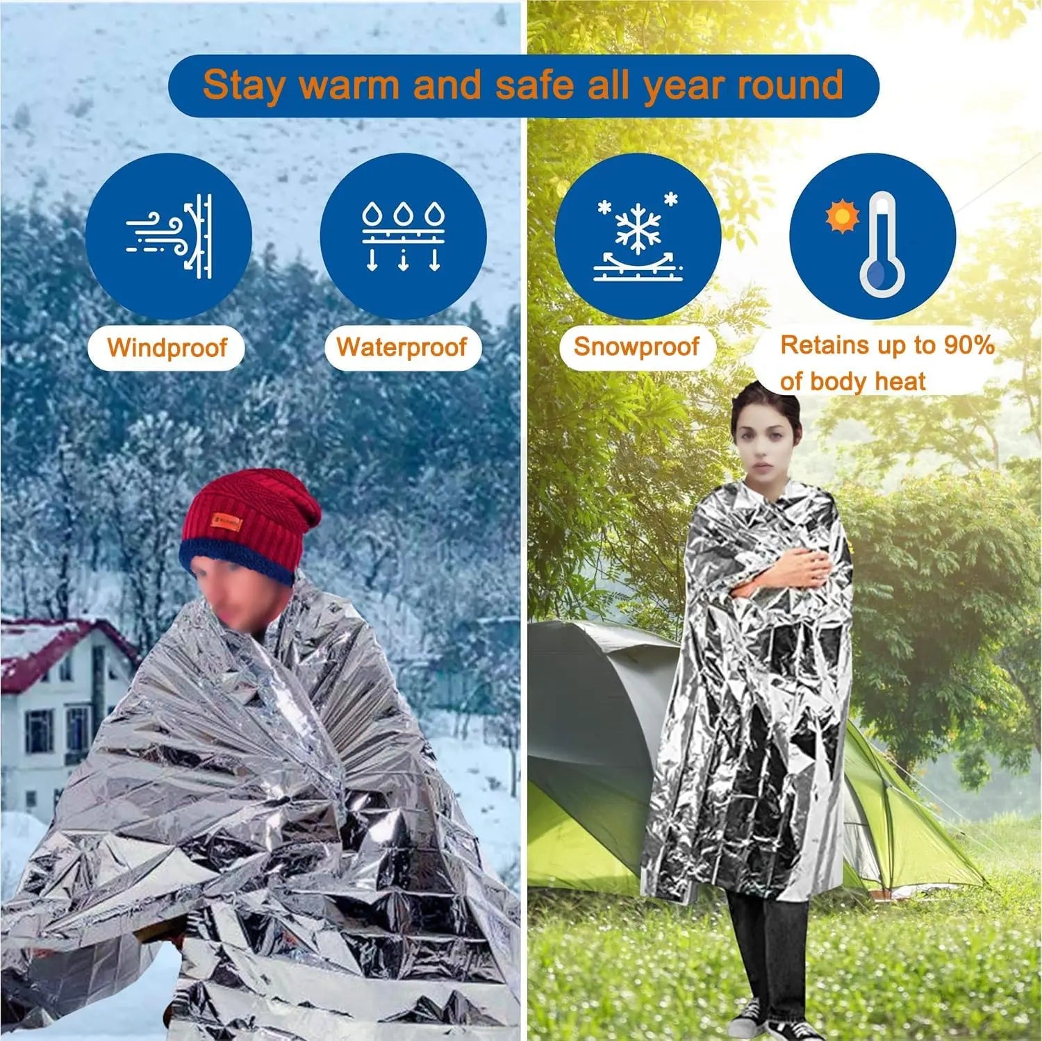 10 Pack Emergency Mylar Blankets,Waterproof